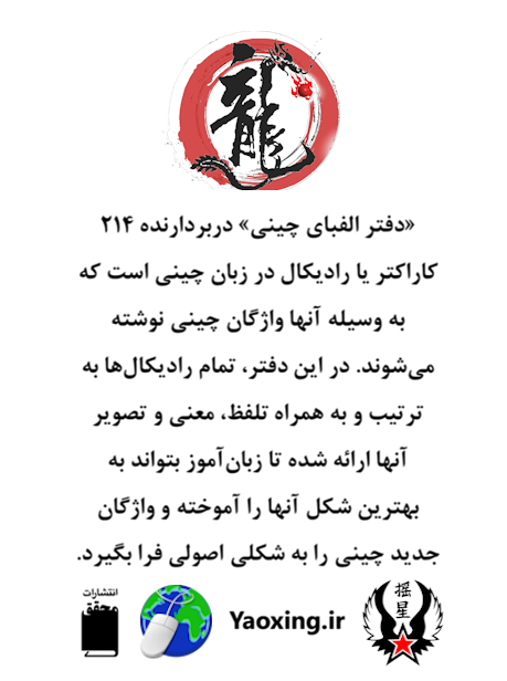 ✅️ معرفی 214 حرف یا رادیکال زبان چینی ✅️ به همراه تلفظ، معنی و تصویر 📑 تعداد صفحات: 214 📑 قطع: جیبی ✍️ نویسنده: سیاوش روحانی